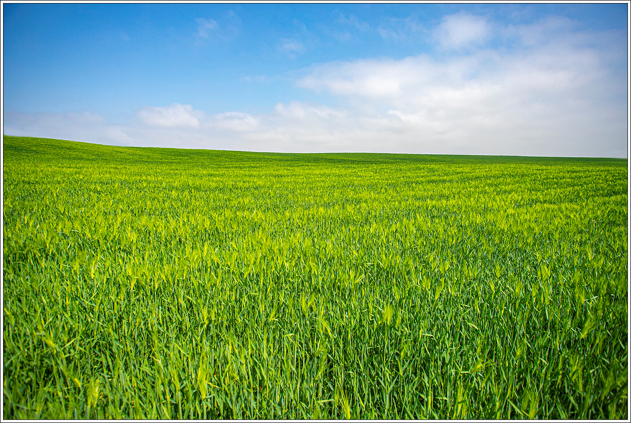 ▽ 가장 높은 곳에서 본 싱그러운 보리밭 전경으로 마음의 평온이 찾아 온다.