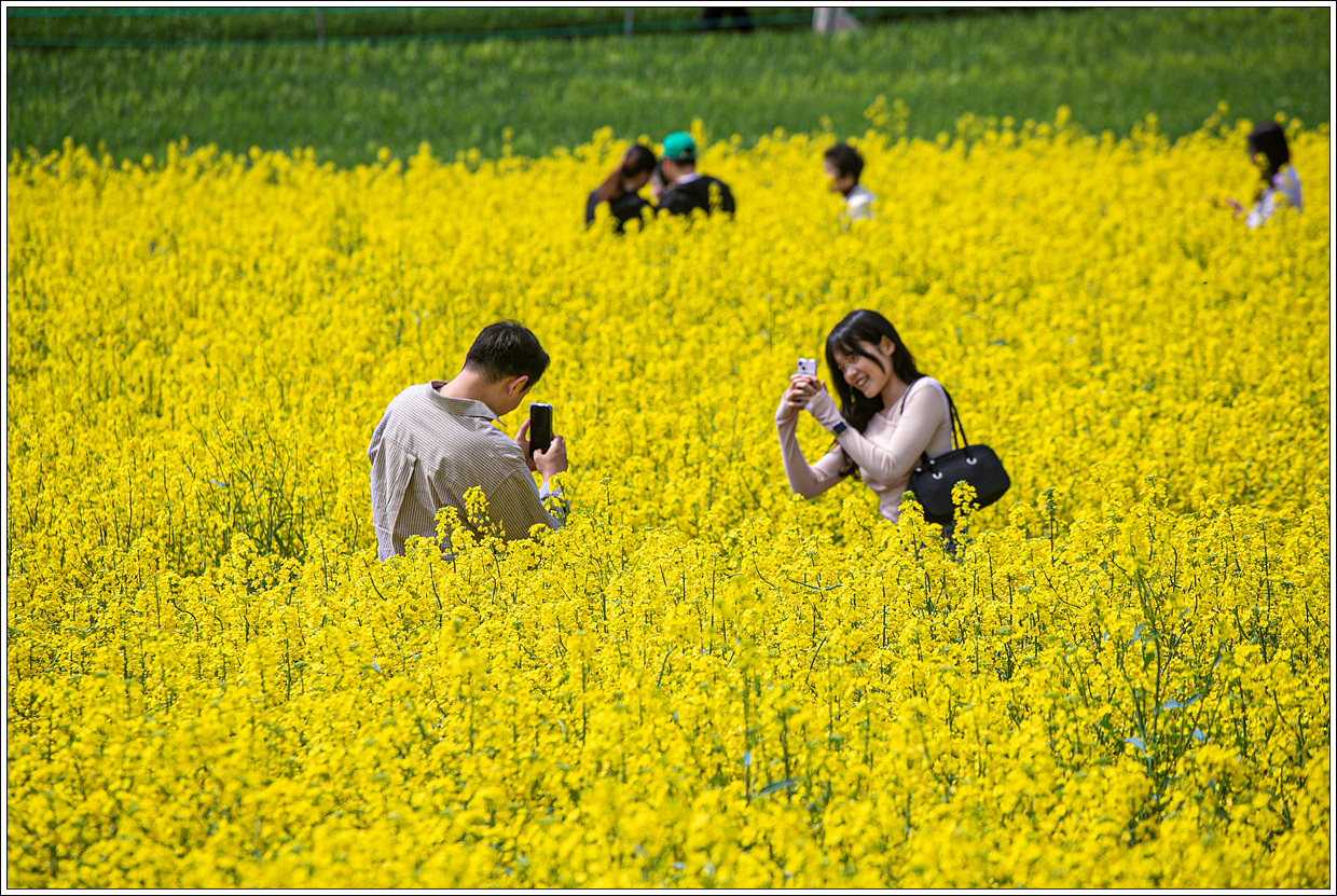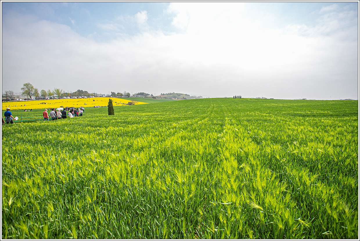 ▽ 보리밭 한켠에 자리한 유채꽃은 덤인 것 같으나 인생샷을 담으려는 인파는 더 많은 듯 하다.