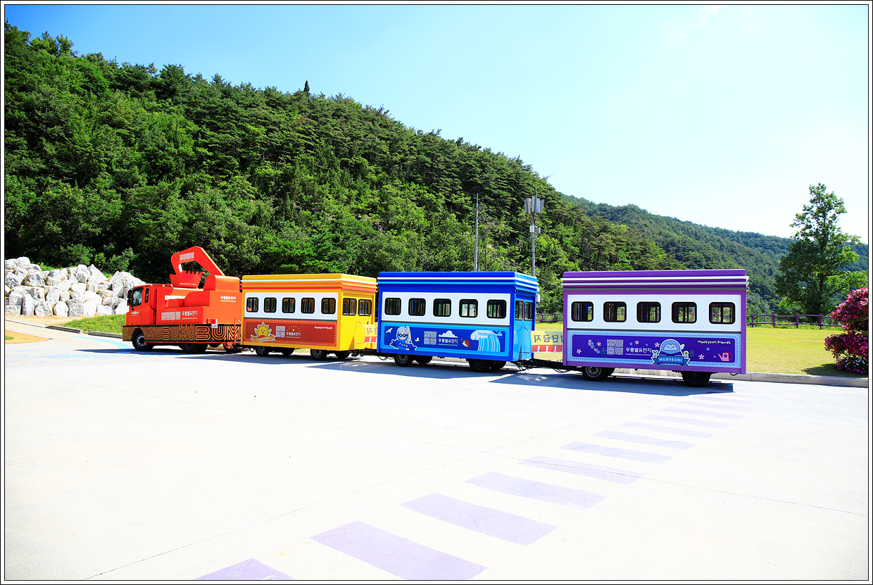 ▽ 대기 중인 무릉별열차로 이 열차는 운행 중 두번을 정차하게 되는데 이곳에서 탑승하여 라벤더 정원에서 한번 정차하고 오프로드루지 정상에서 정차했다가 유턴하여 이곳으로 다시 내려온다.