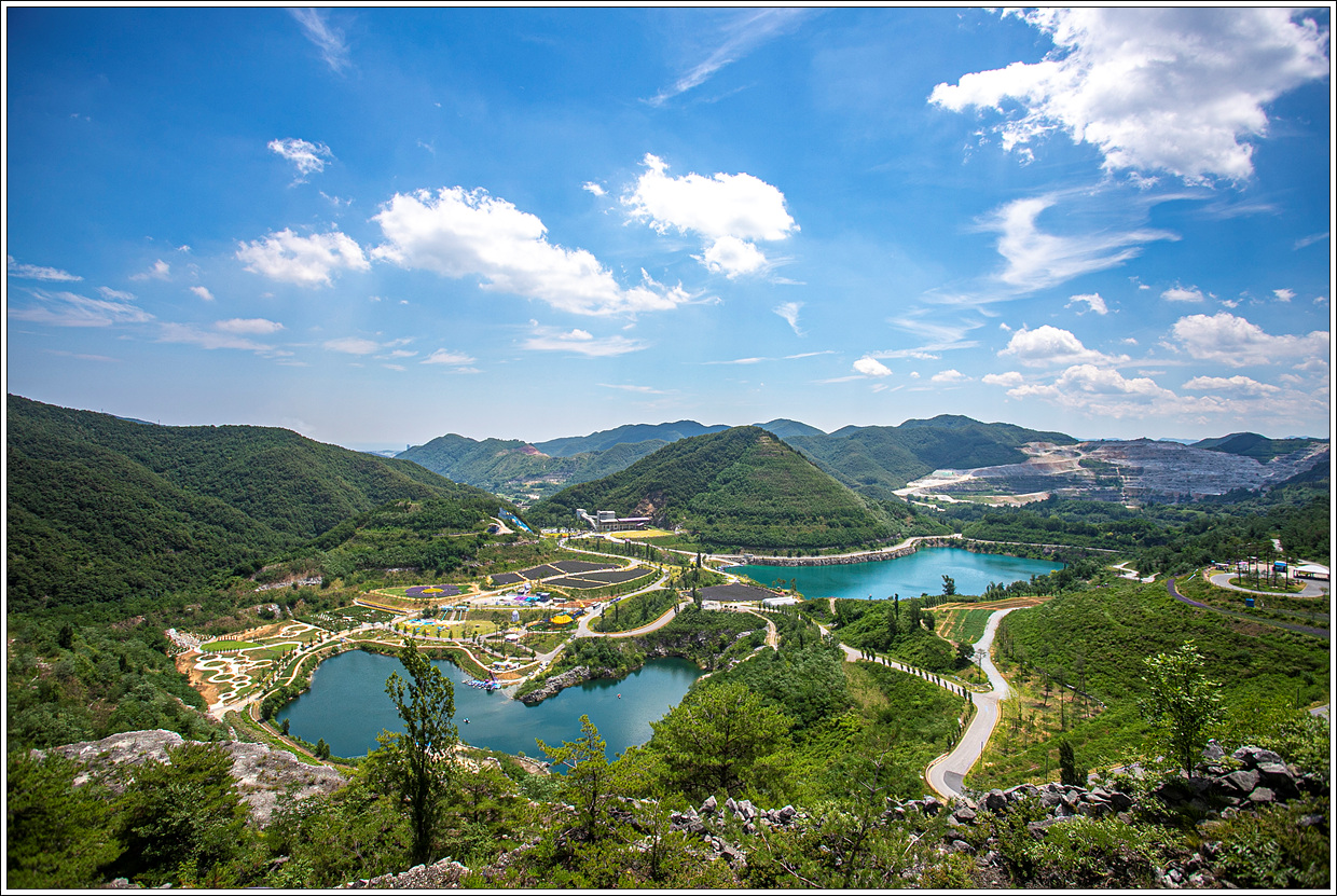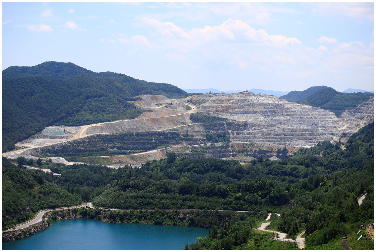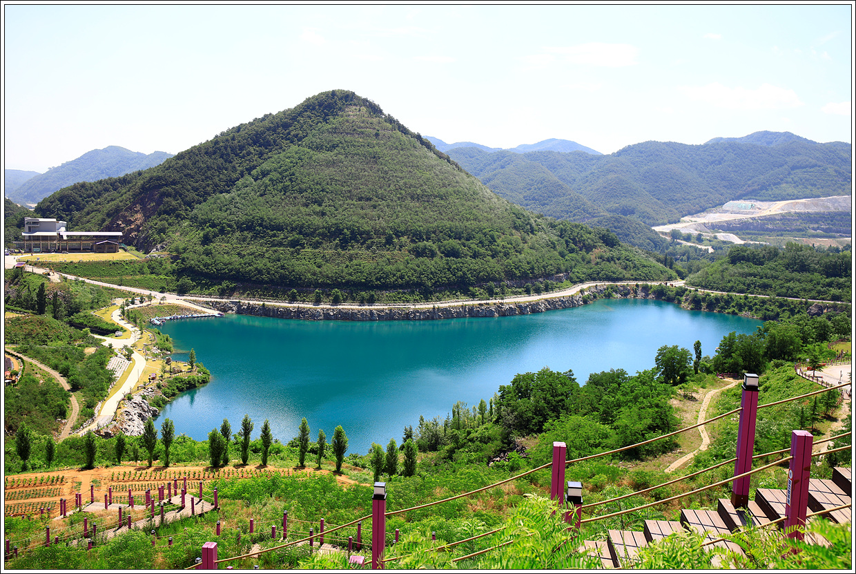 ▽ 시멘트 기업인 쌍용 C&E가 석회석을 40년간 채광을 마친 무릉 3지구에 에메랄드 빛 호수가 생기고 다양한 체험 시설을 갖추면서 관광명소로 거듭났다.