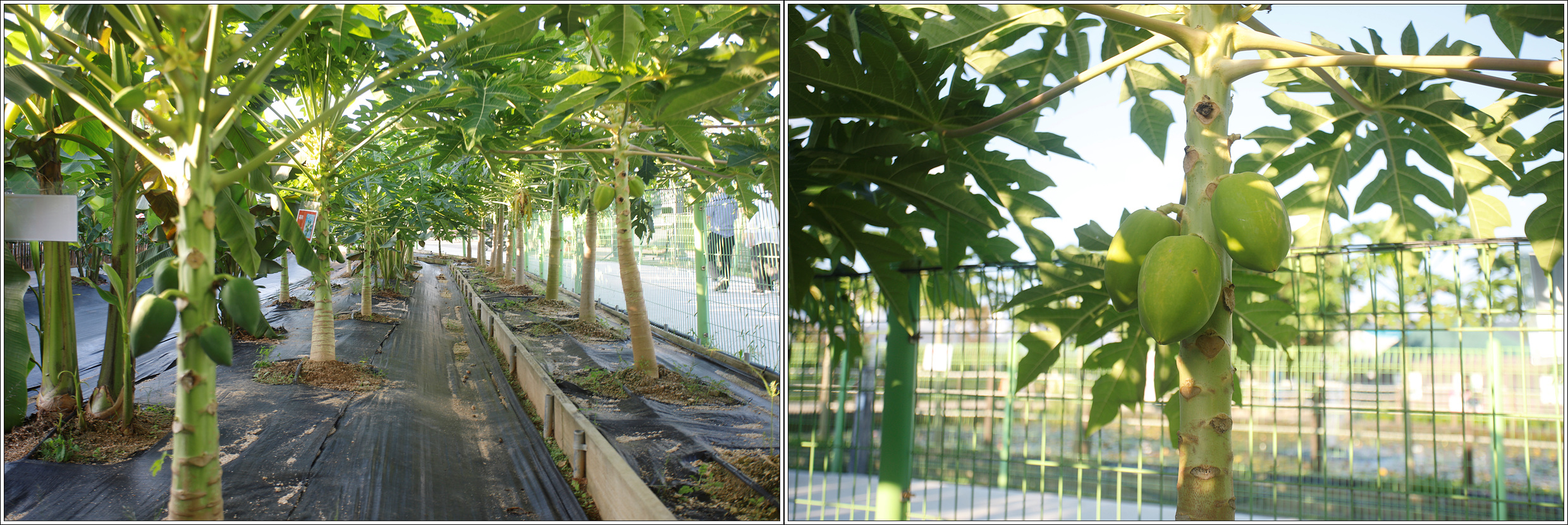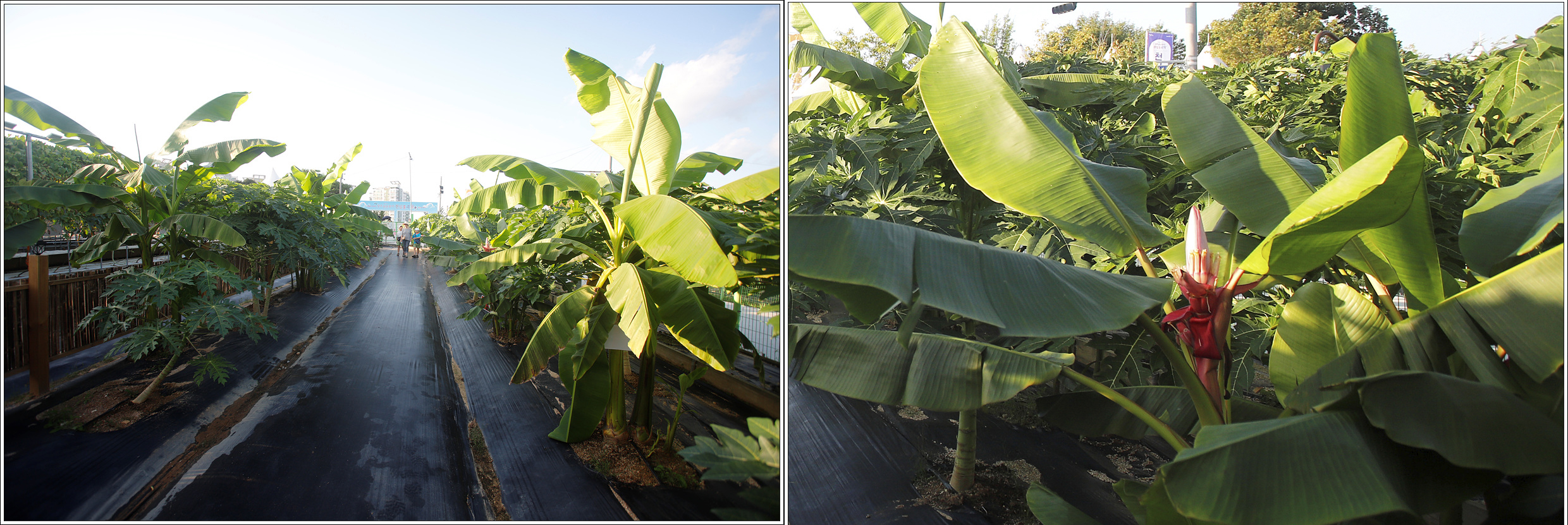 ▽ 열대작물존에는 중앙 아메리카의 열대 지역 원산인 카리카 파파야(Carica papaya)의 열매가 달렸고, 이 나무는 태국, 필리핀 등 동남아시아를 비롯한 열대 지방에서 재배하며, 나무 자체를 파파야라고 부르기도 한다. 한쪽에는 벨벳바나나가 꽃을 피웠다.