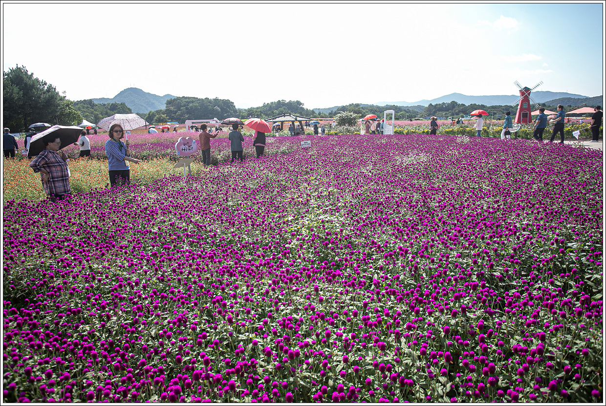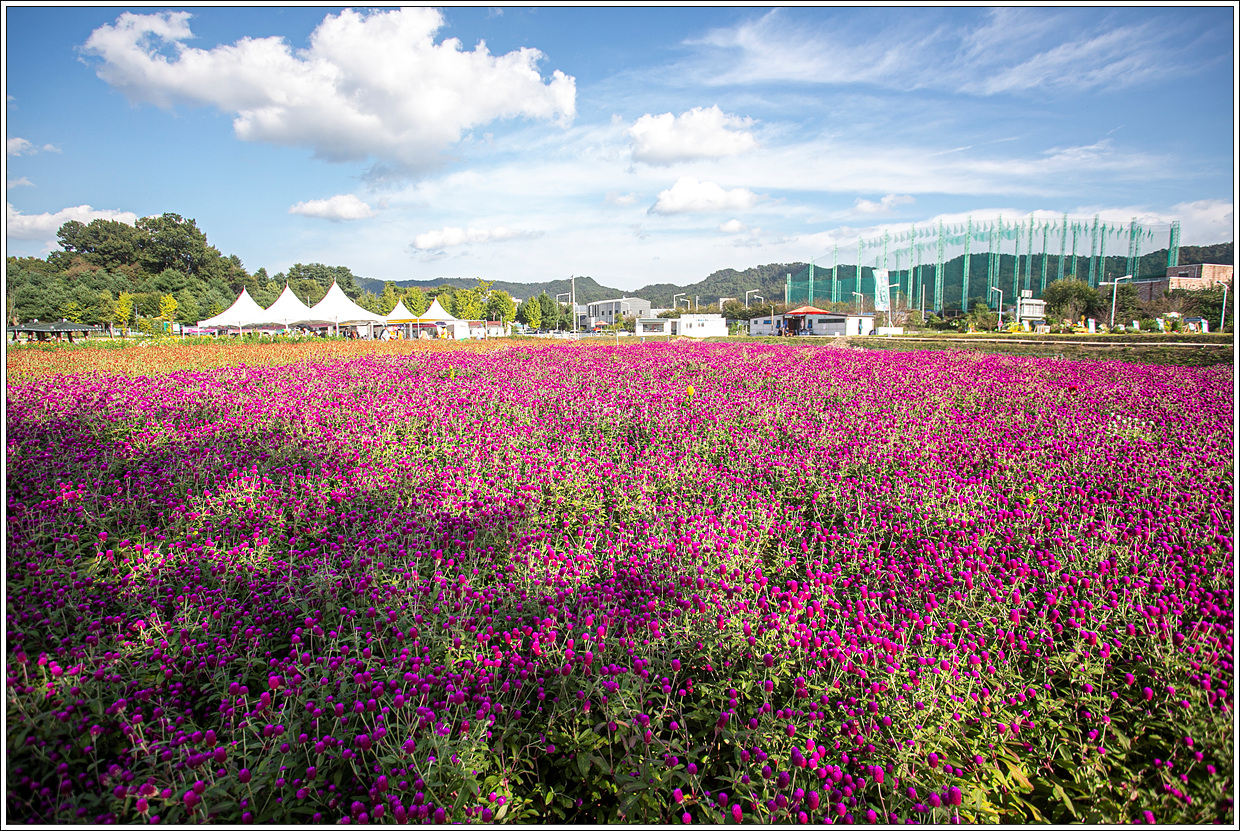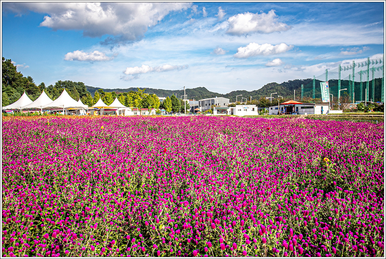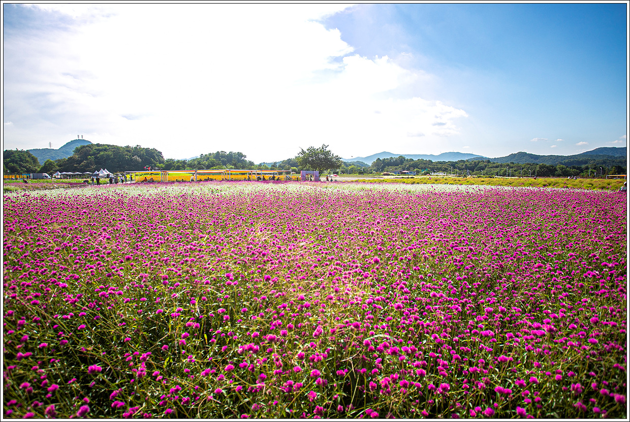 ▽ 대로의 저 끝쪽이 전망대가 있고 그 좌우로 천일홍 뿐만이 아니라 다양한 꽃들로 구성이 되어 있다. 어린이나 노약자들을 위해 관람카트를 운용하고 있는데 이용료는 2,000원이다.