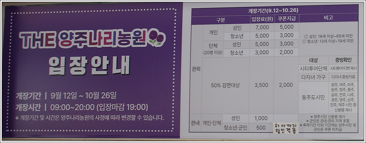 가을 꽃축제가 전국 이곳저곳에서 진행 중이거나 열릴 예정이다. 지난 여름의 폭우와 폭염에 시달리다 선선한 가을을 맞아 나들이하기에 딱 알맞은 계절, 그러나 가을은 짧기만 하다. 수도권에서 비교적 가까운 양주에서 꽃축제가 열린다는 소식에 들러봤다.