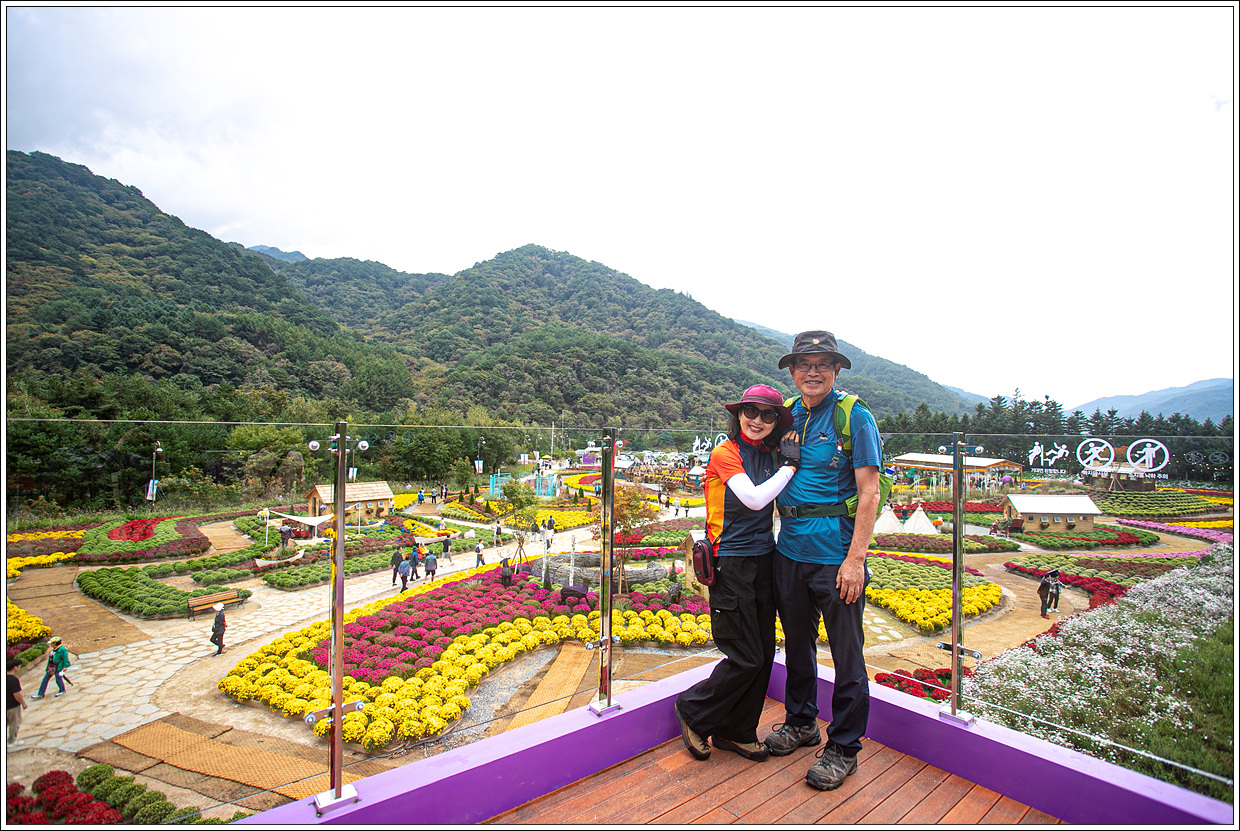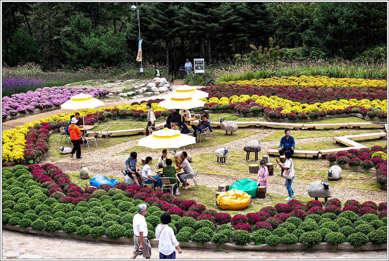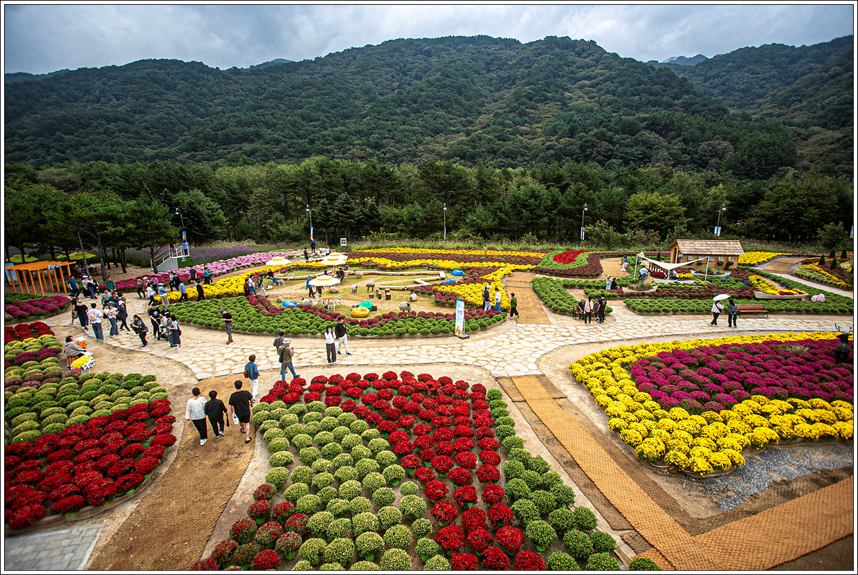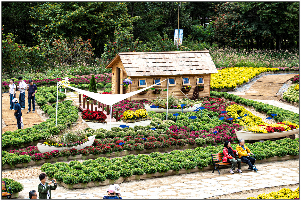 ▽ 우선 국화를 전시해 놓은 행복하길 코스의 전망대에 올라보니 전체의 풍광이 한눈에 들어온다.