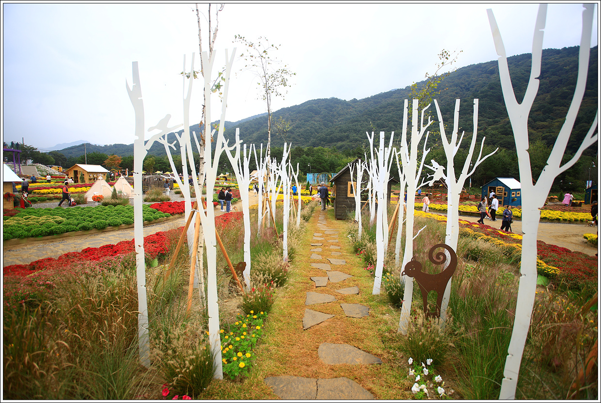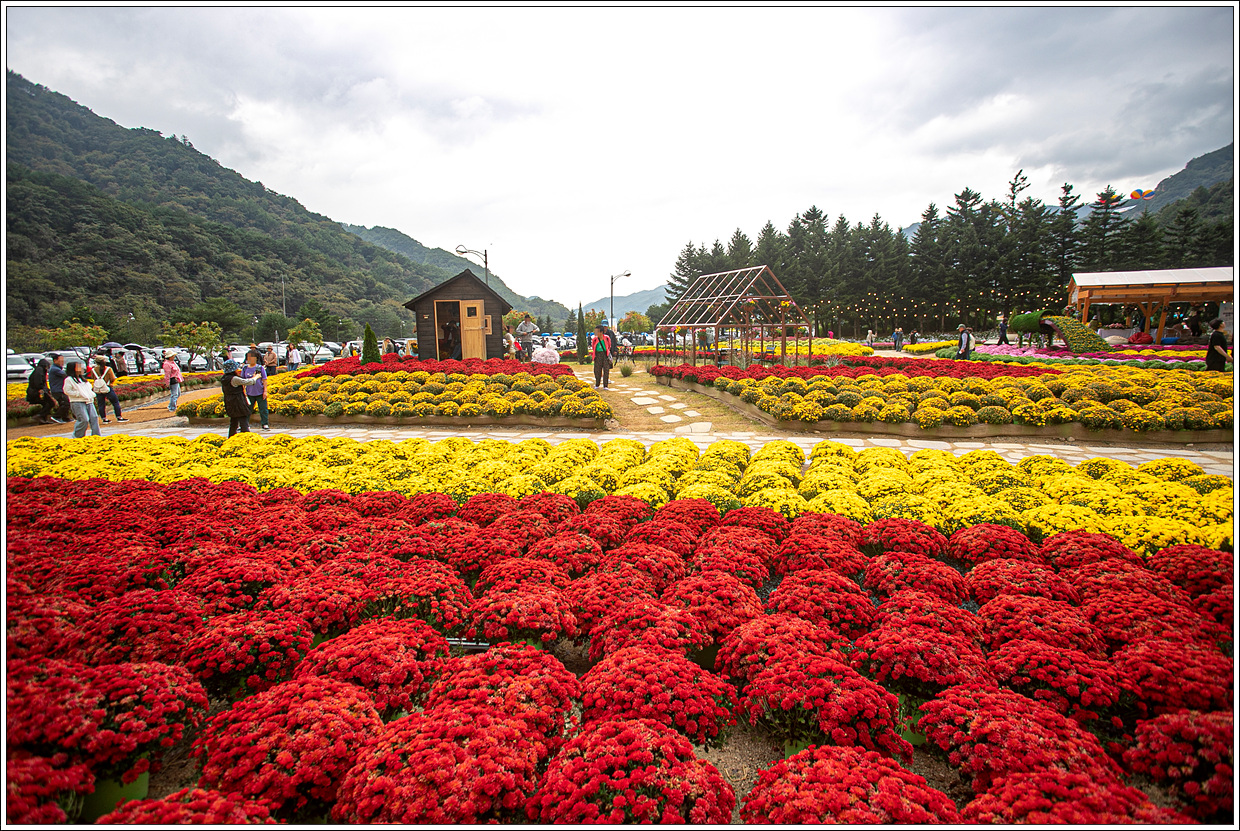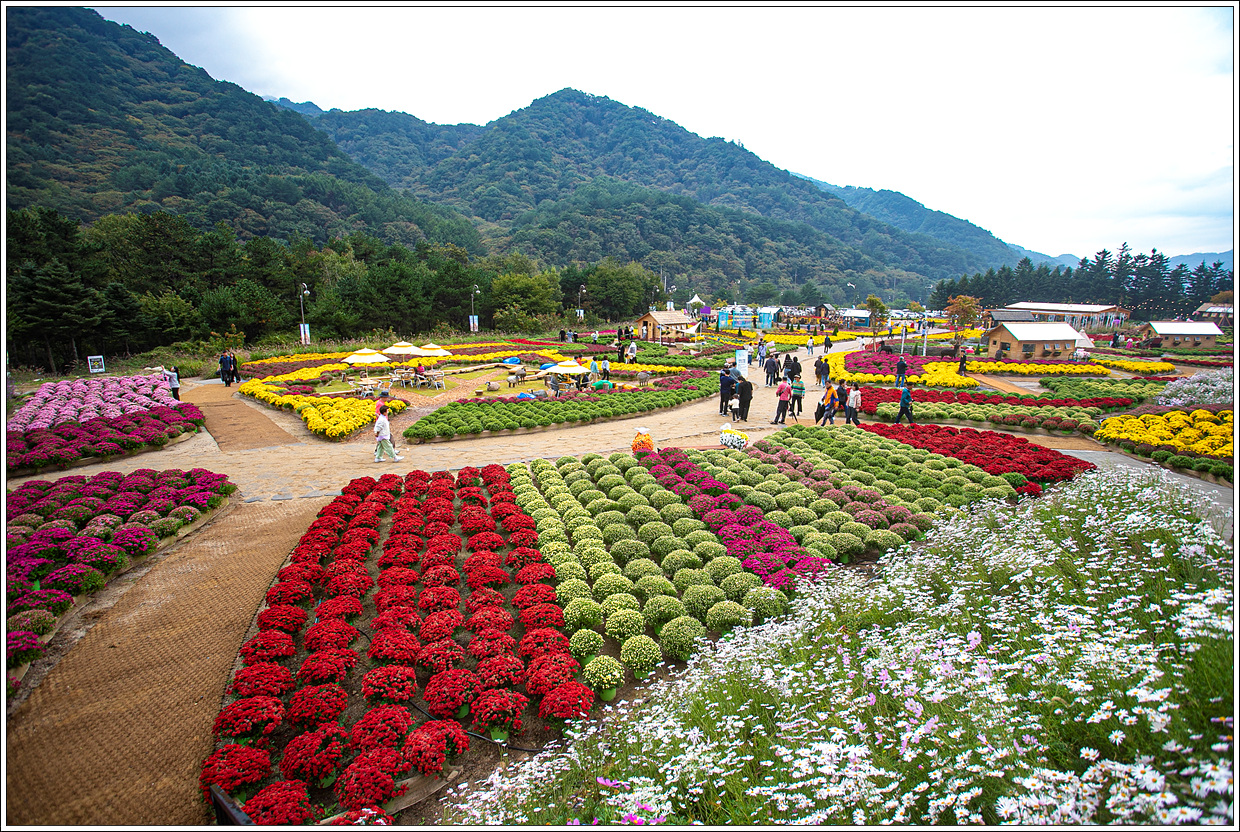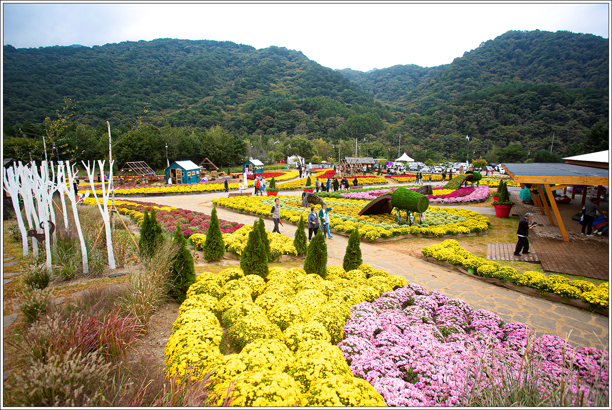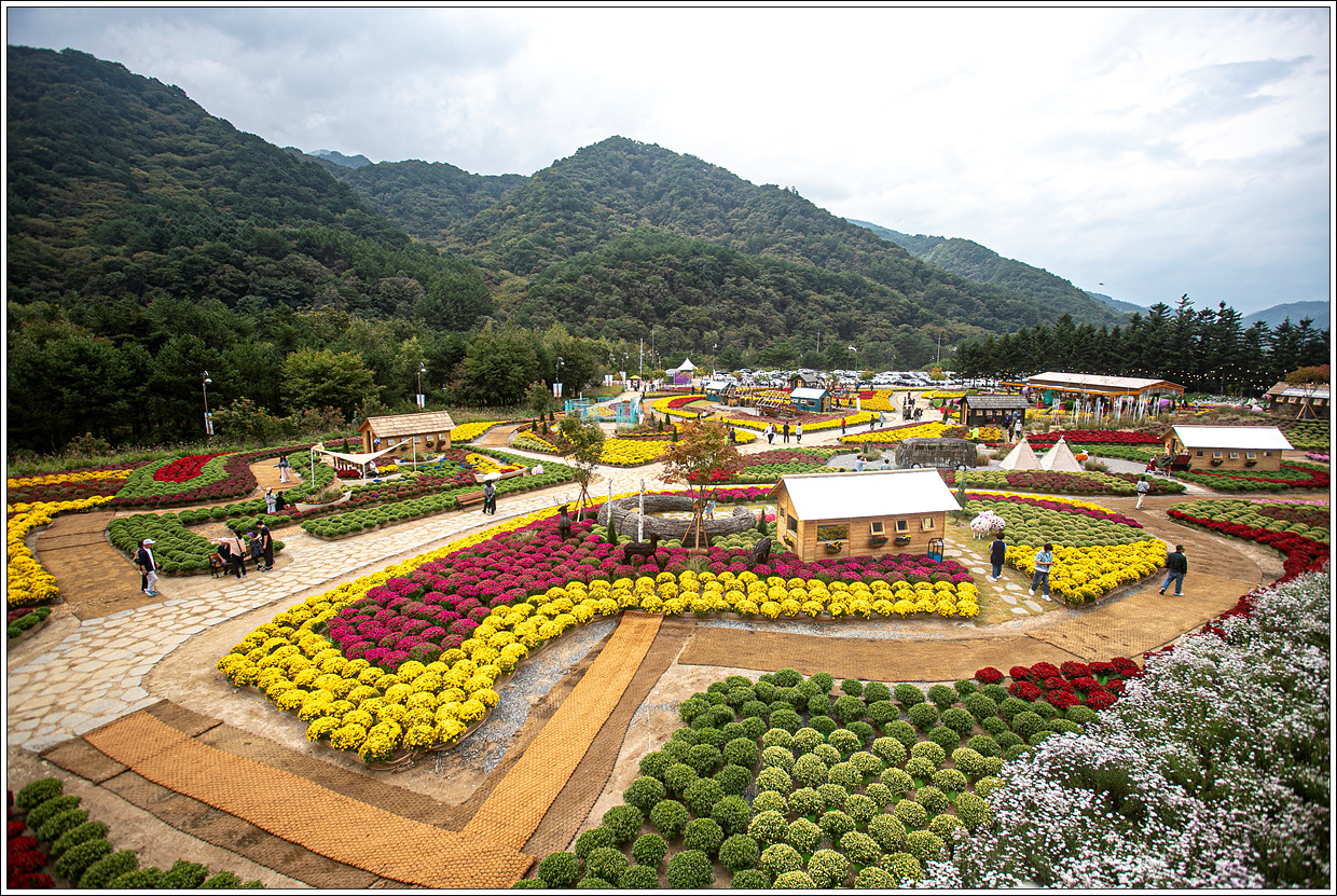 ▽ 우선 국화를 전시해 놓은 행복하길 코스의 전망대에 올라보니 전체의 풍광이 한눈에 들어온다.