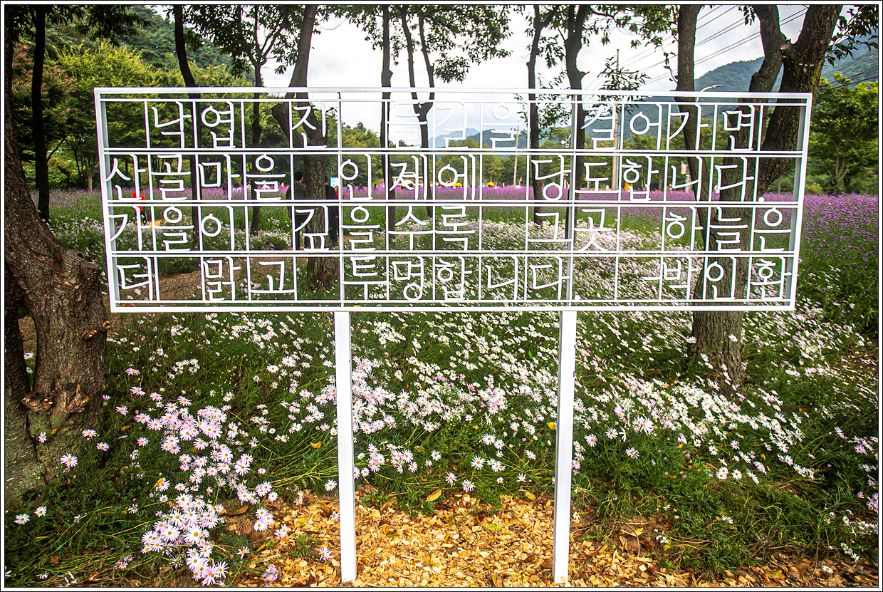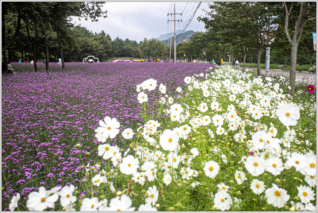 ▽ 버들마편초 밭가에 흰코스모스만 식재를 해 놔서 오히려 더욱 청순한 느낌이다.