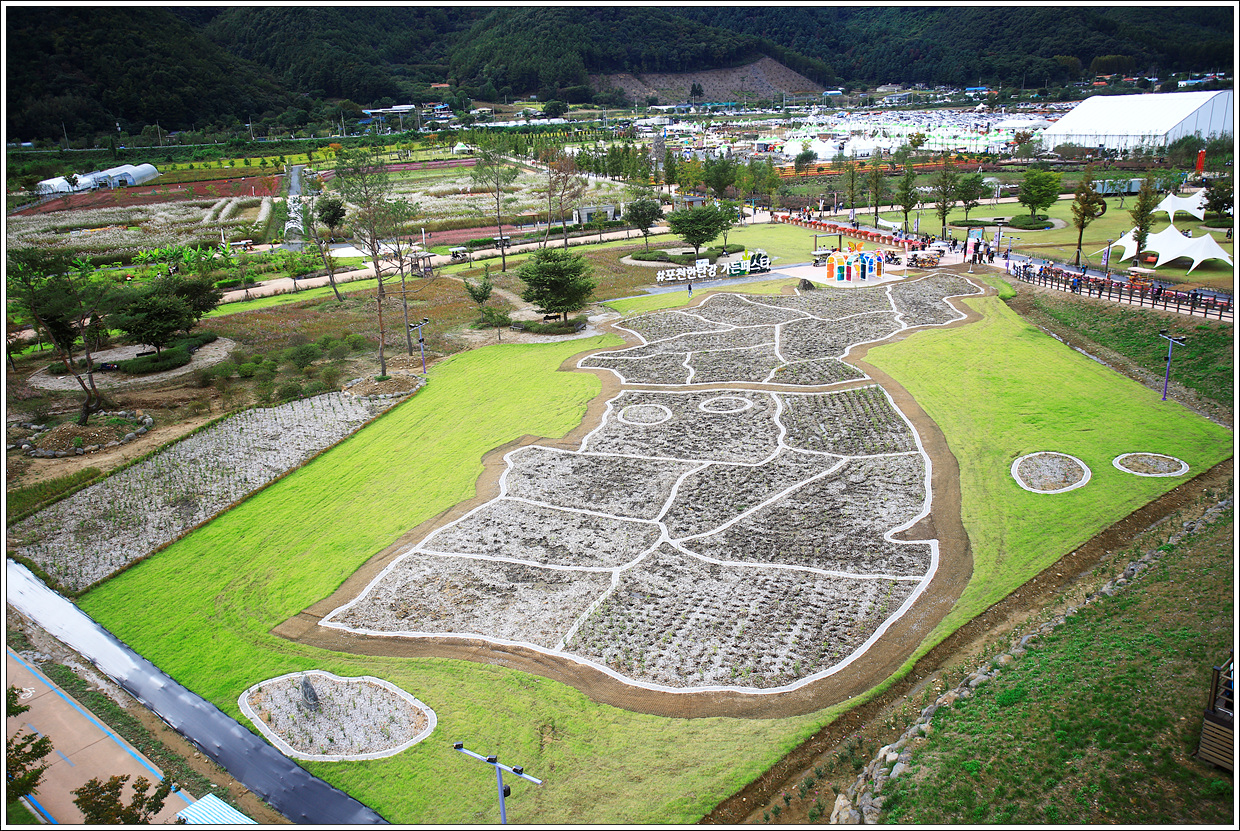 아래에 대한민국 지도로 꾸며진 정원은 옛 조선시대에 그려진 지도같아 눈길이 간다.