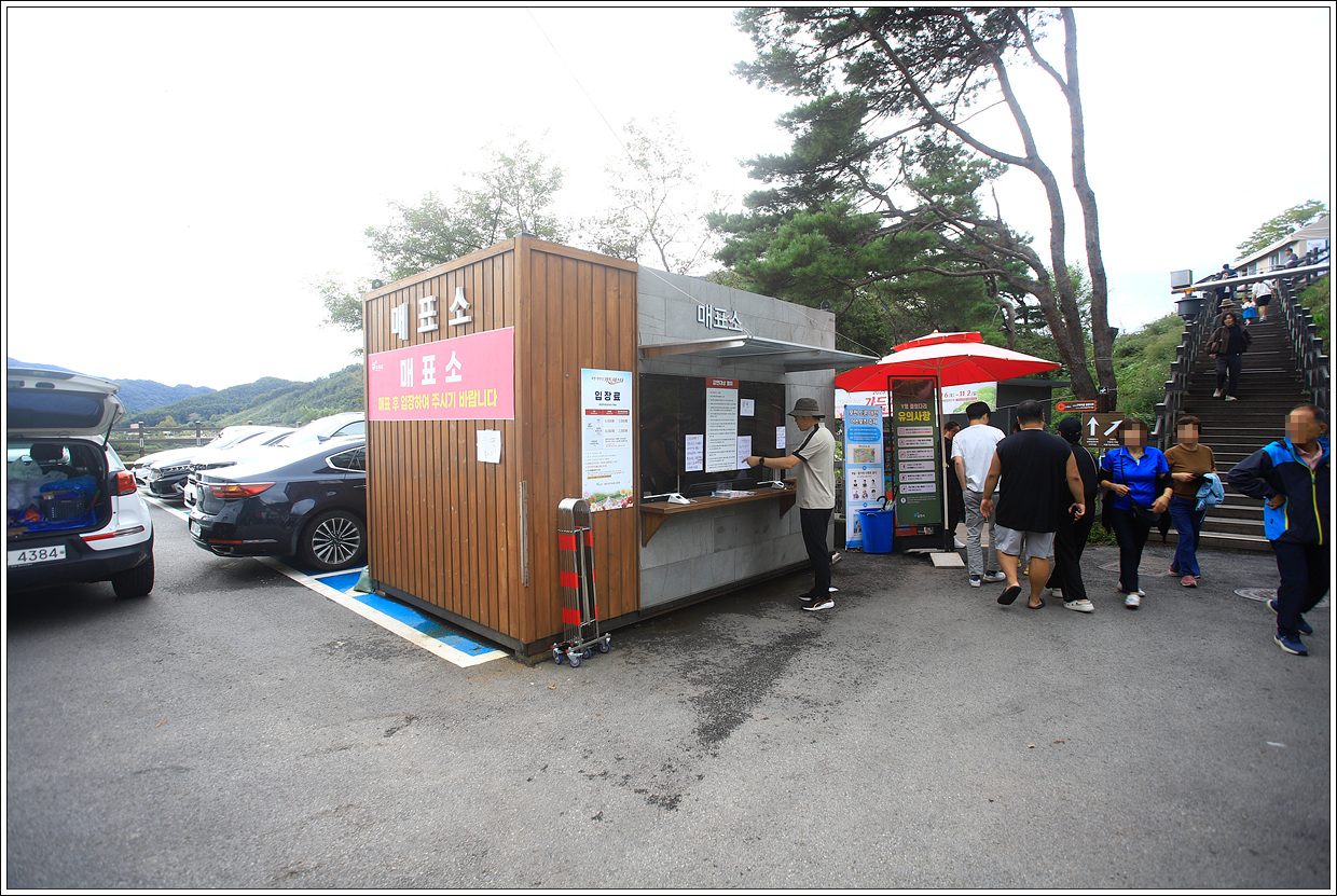▽ 비둘기낭폭포에서 멀지 않은 Y자형출렁다리를 건너가 보기로 한다. 주차장은 무료이나 협소하여 가까스로 길옆 빈 공간에 주차하고 표를 예매한다. 입장료 성인 6,000원, 어린이 및 청소년 3,000원(포천시민, 65세 이상 등 신분증 확인자는 무료), 입장료의 50%는 포천사랑상품권으로 환급.