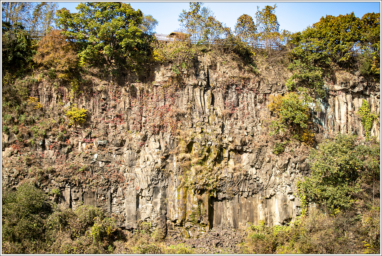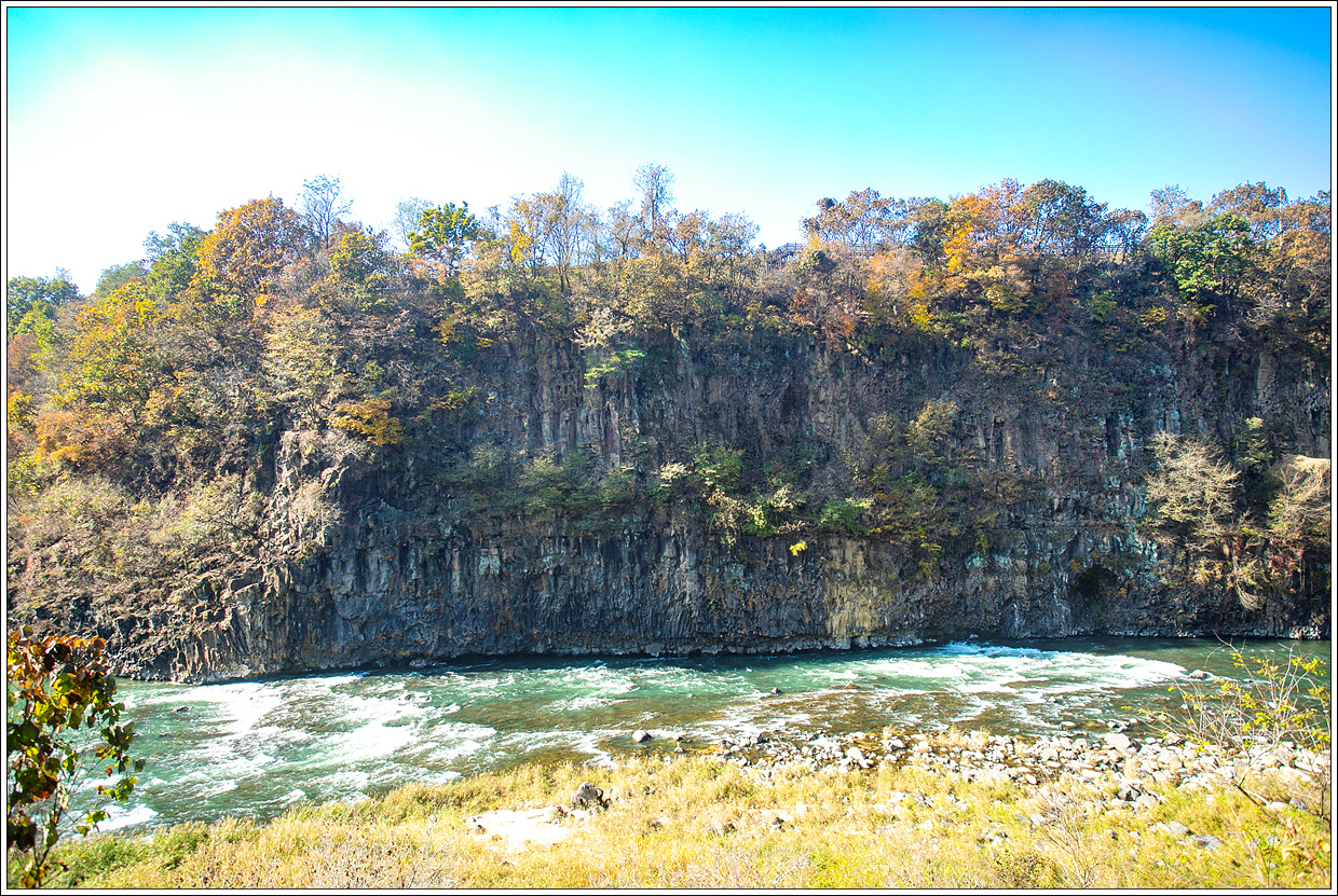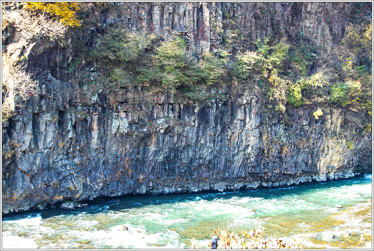 ▽ 한탄강은 화산암 지형으로 응회암과 주상절리가 많고 기암괴석, 절벽이 어우러져 멋진 경관을 자랑한다.