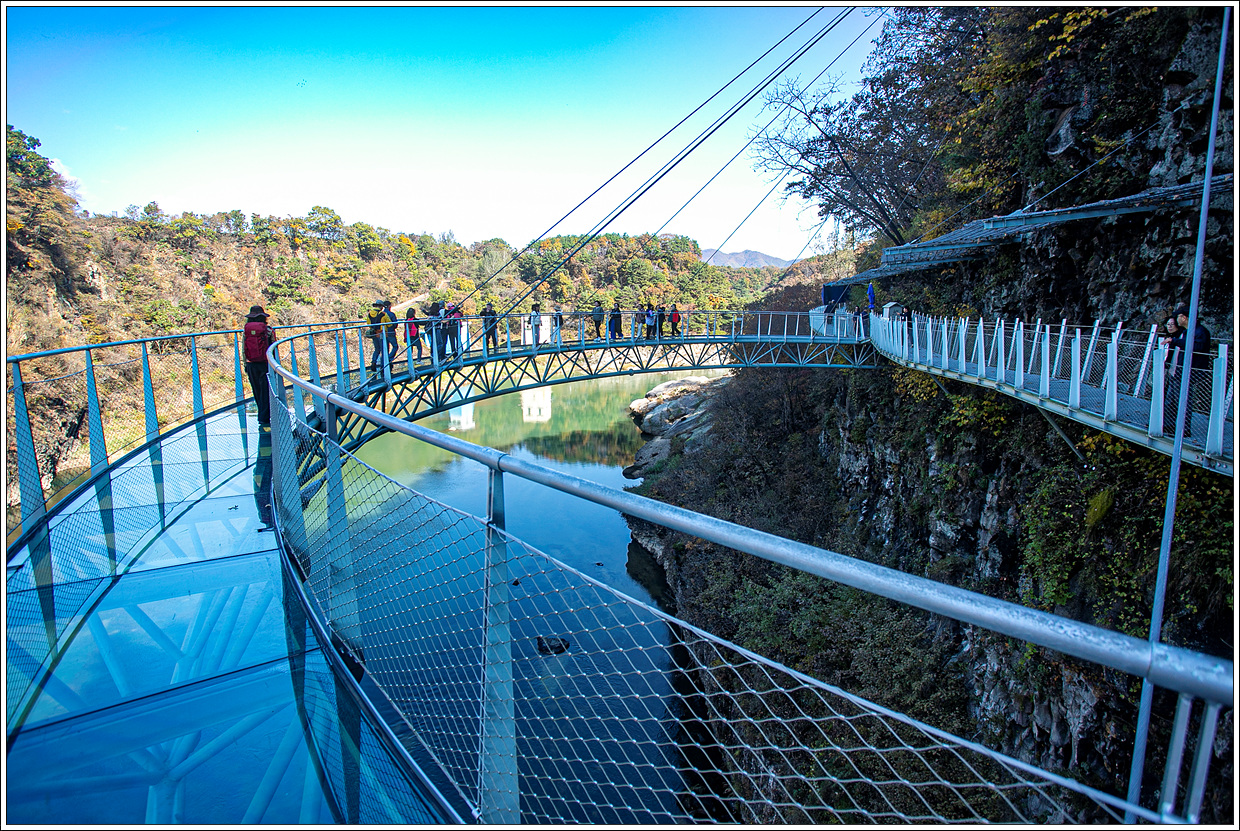 ▽ 수평절리교의 잔도이다. 잔도는 중국의 명산 어디서든 걸어 볼 수 있는데 오금이 저릴 정도다. 우리나라의 잔도 건설 기술력은 중국 못지 않을 터인데 자연보호 차원에서 어려운 것 아닌가 생각을 해 보게 된다.