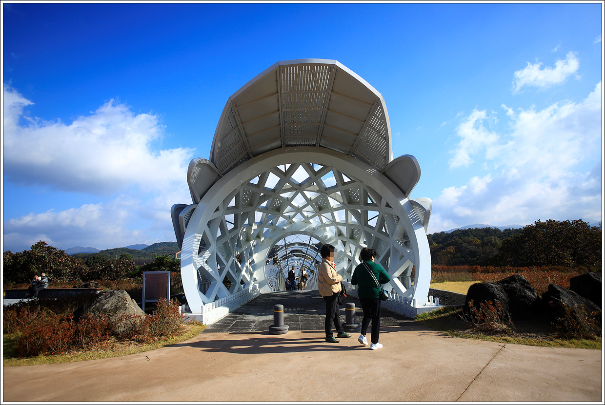 ▽ 두루미를 형상화한 현수형 도보교인 두루미교 입구