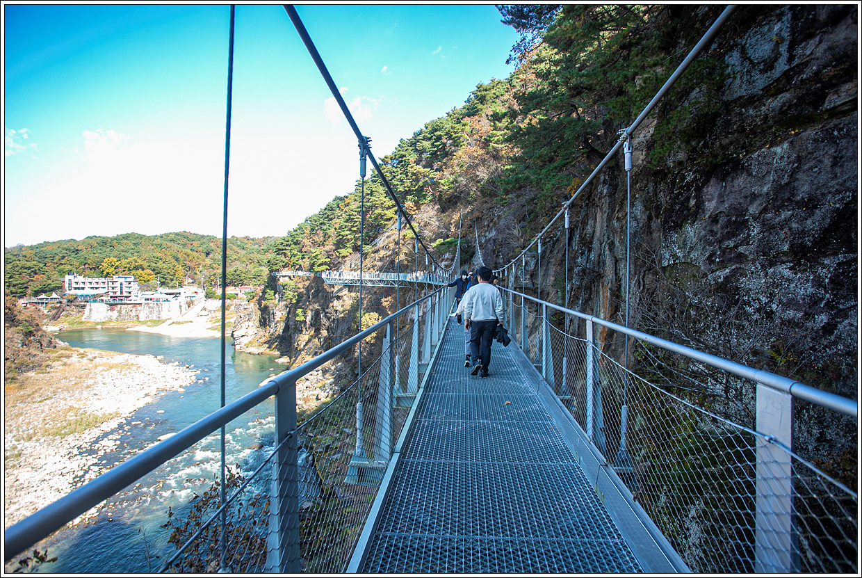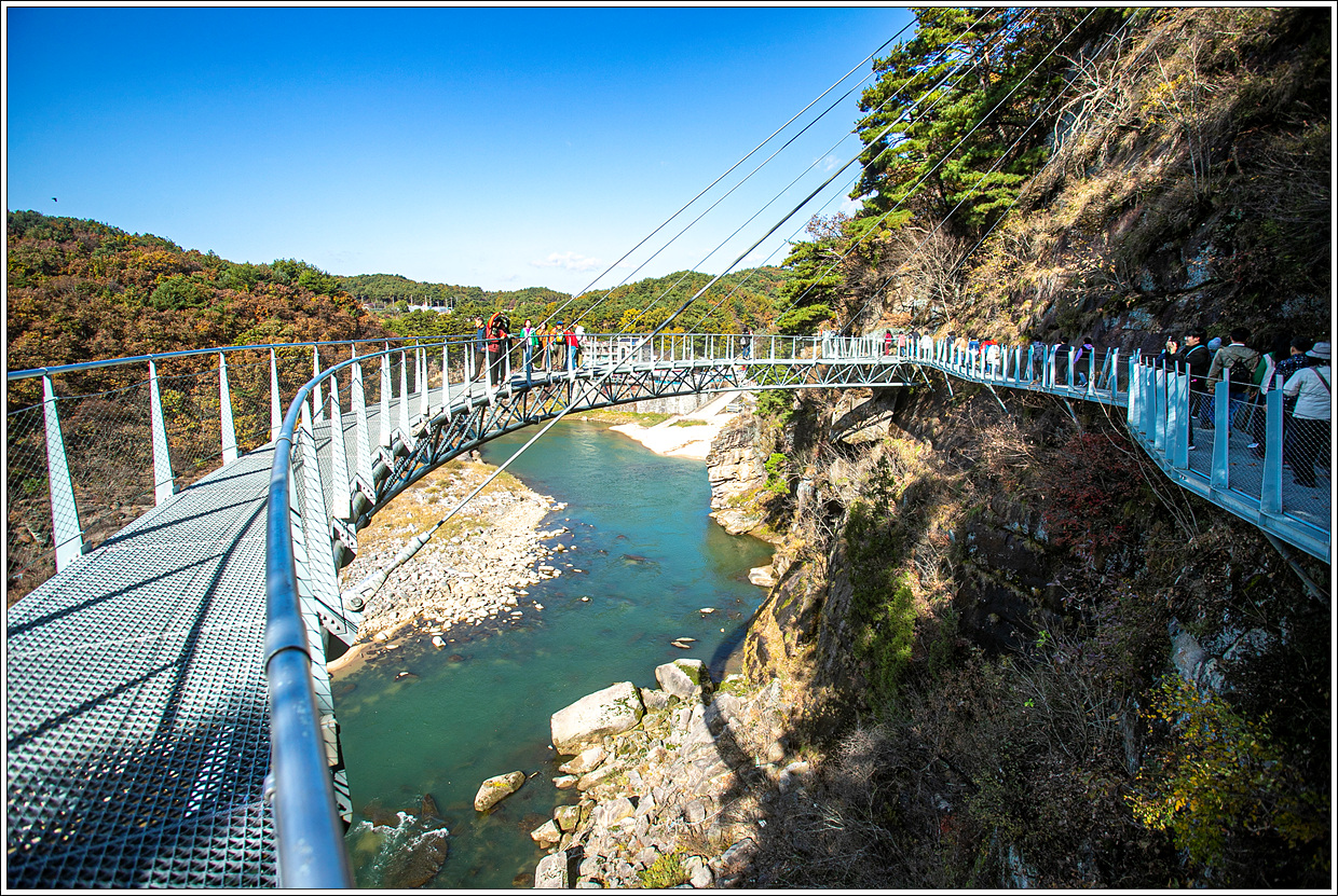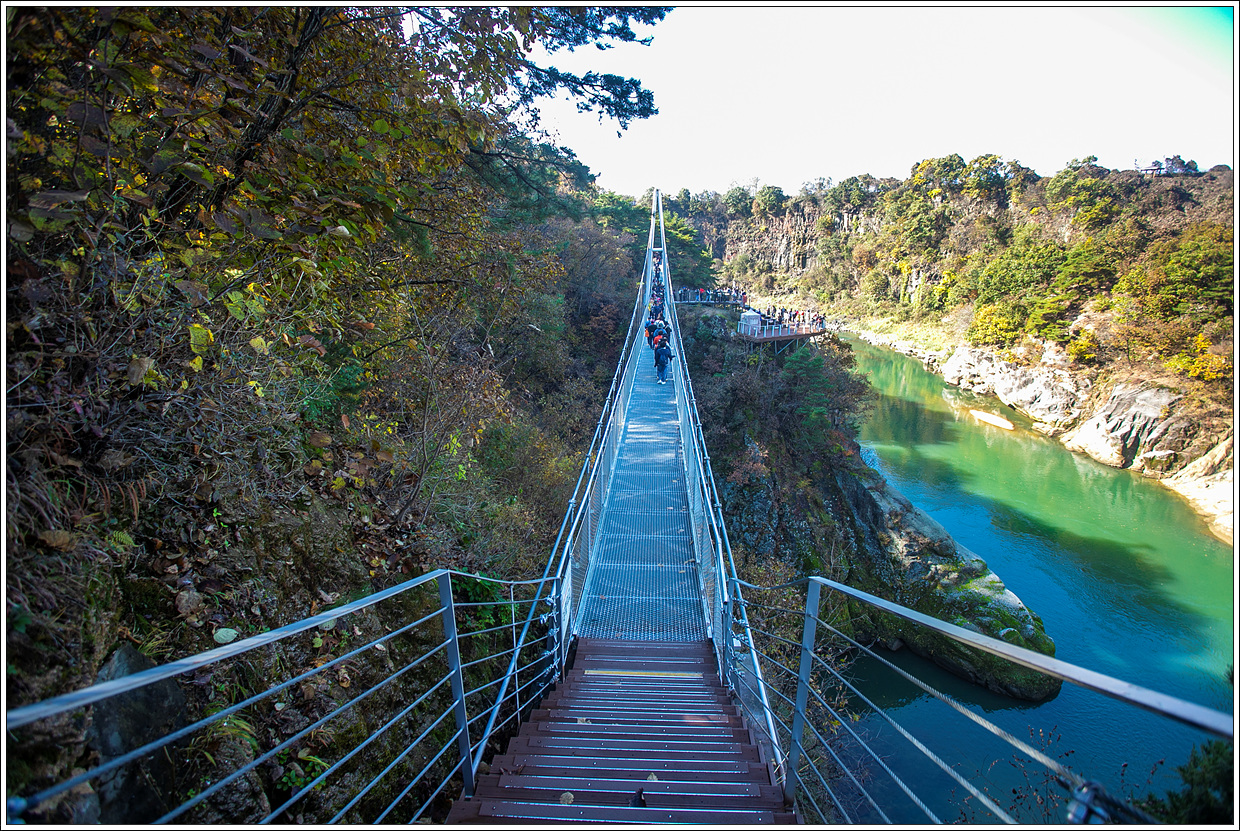 ▽ 주상절리 잔도를 걷기 전에 포천시 관인면 냉정리와 연결된 두루미교를 건너 보기로 한다.