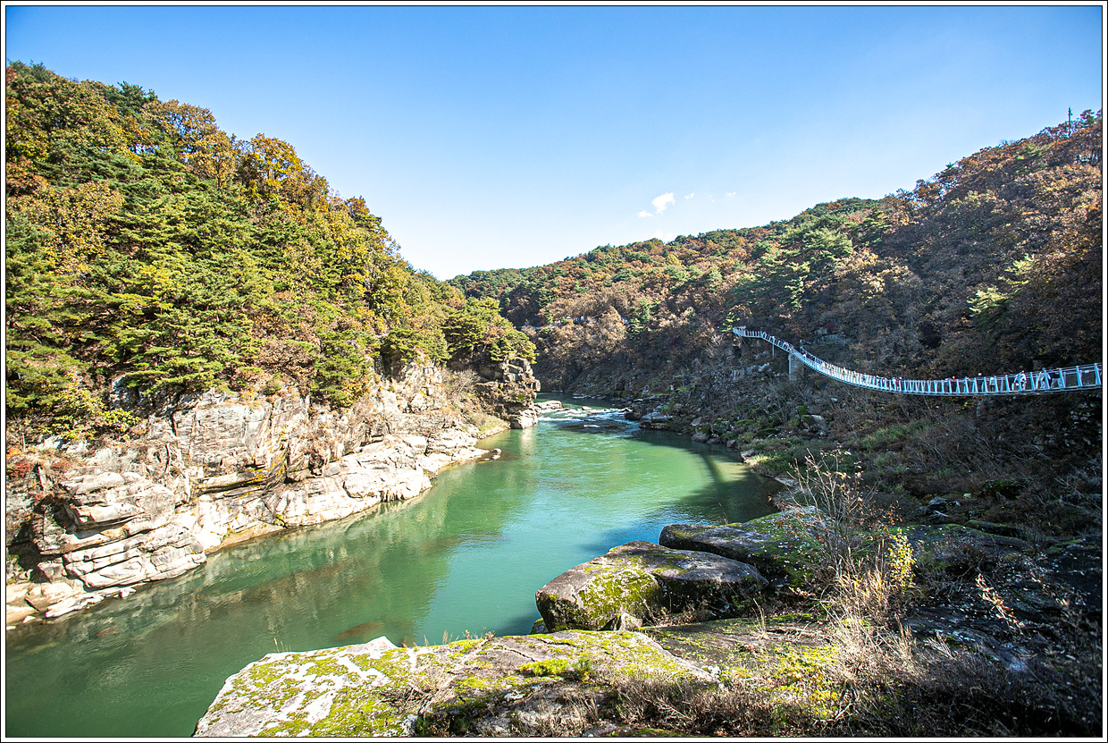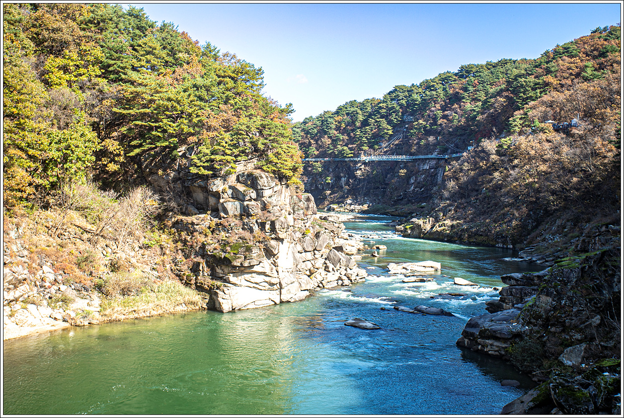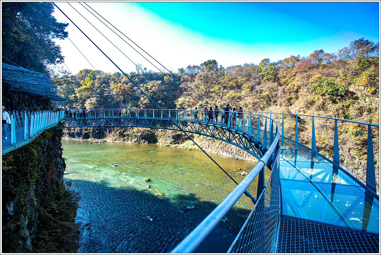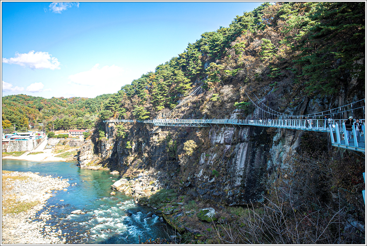 ▽ 주상절리 잔도를 걷기 전에 포천시 관인면 냉정리와 연결된 두루미교를 건너 보기로 한다.