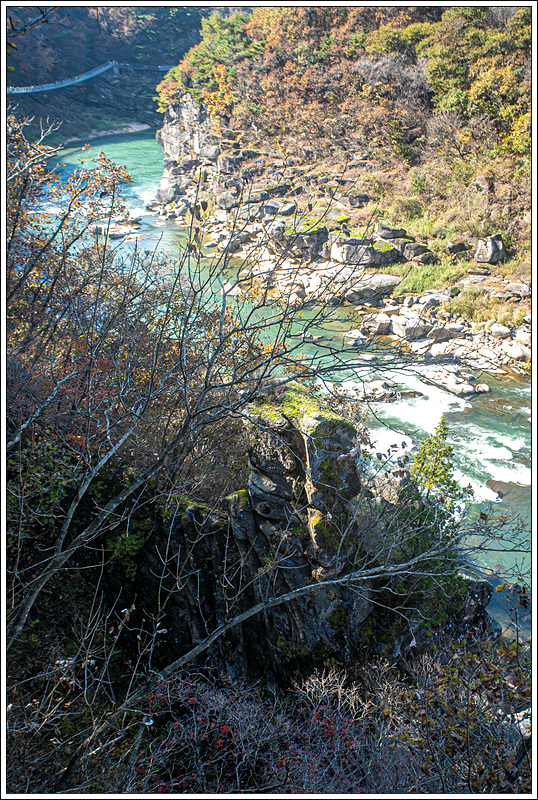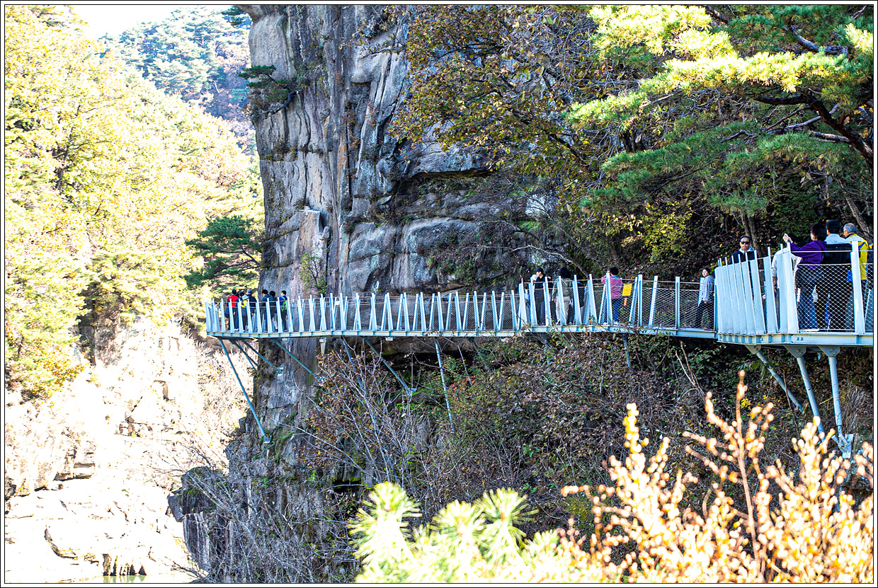 ▽ 절벽에 곱게 물든 단풍이 너무 곱고 아름답게 물들었다.