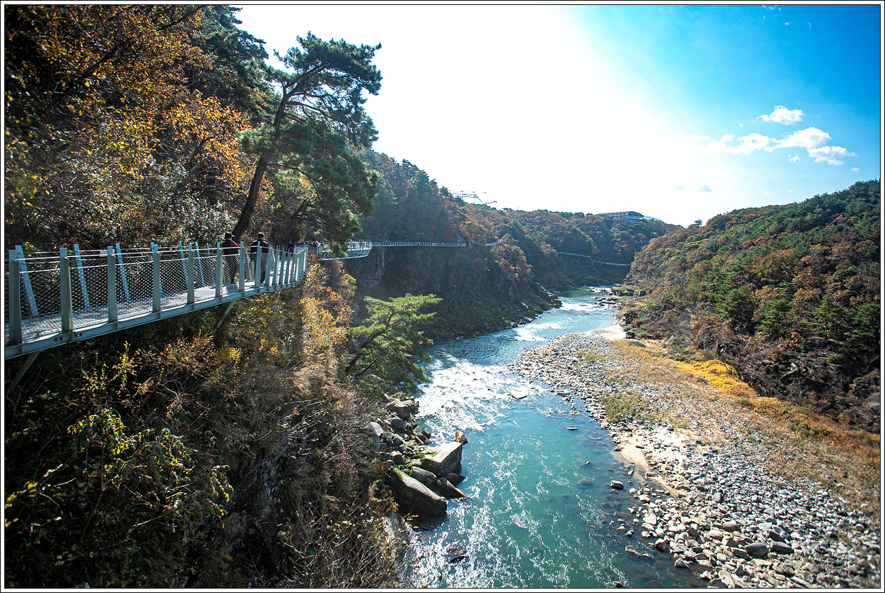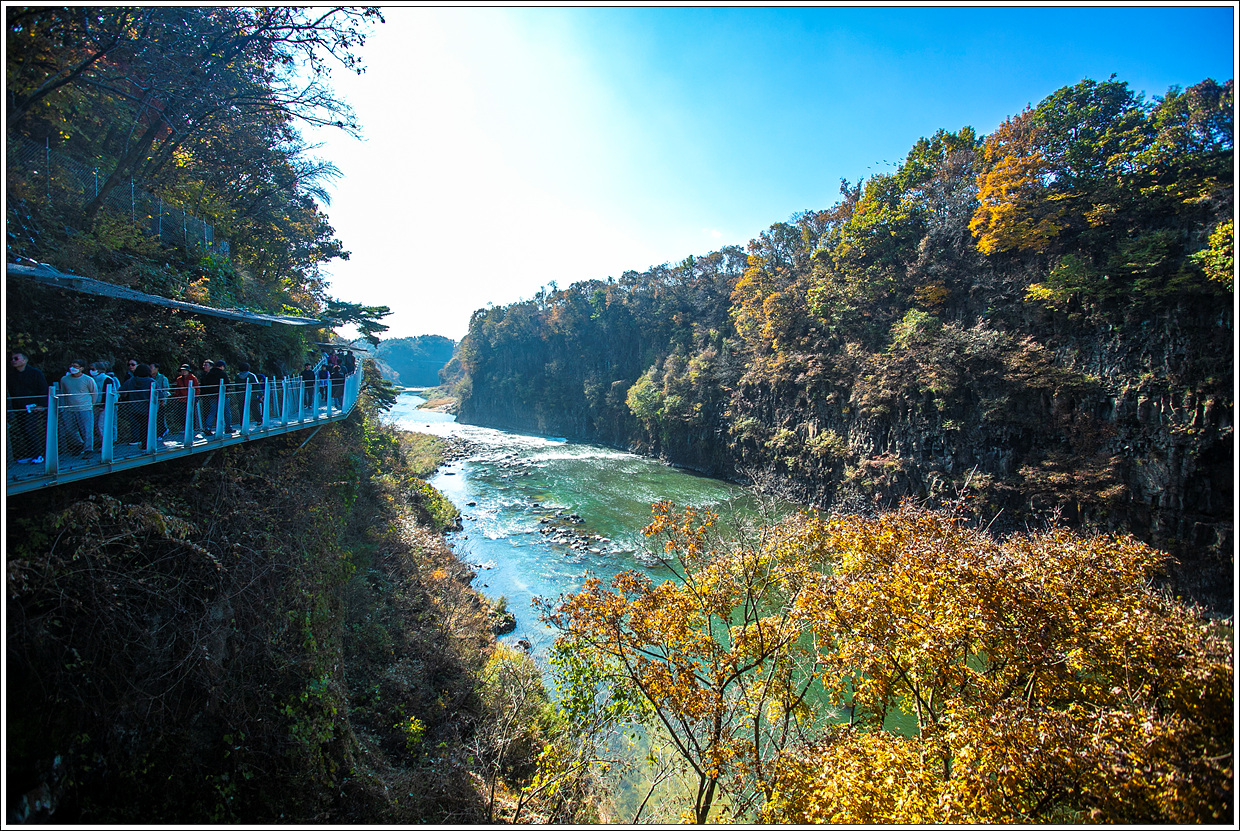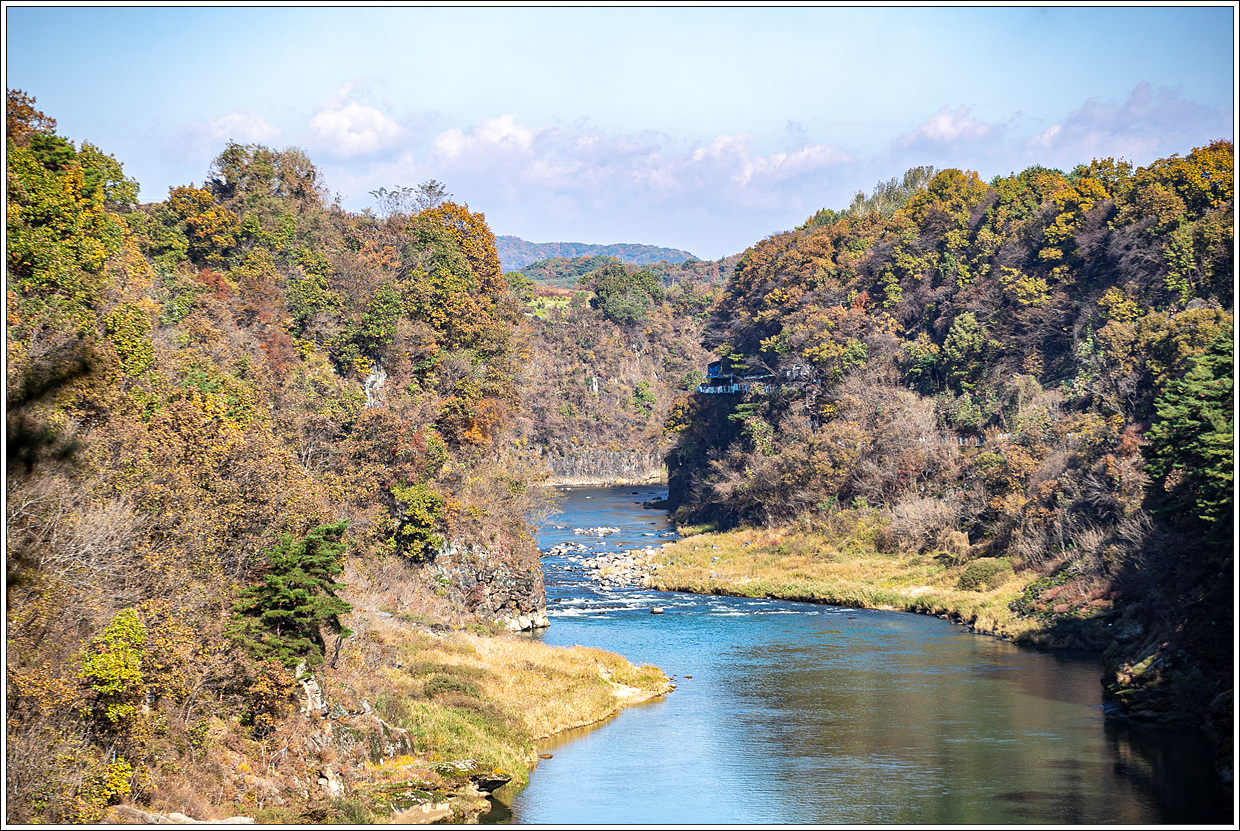 시월 한 달이 어떻게 지나갔는지 가을꽃 축제 몇 군데 갔다오니 11월을 맞았다. 가을의 절정을 맞은 요즘 전국의 산은 단풍을 즐기려는 사람들로 붐빌텐데 반대로 강가를 찾아 단풍을 즐길 수 있겠다 싶어 그동안 잔도가 생기고 나서 가보지 못했던 한탄강을 가보기로 한다. 한탄강의 주상절리를 보며 얼음트레킹을 해 본지도 벌써 6년이 되어간다.