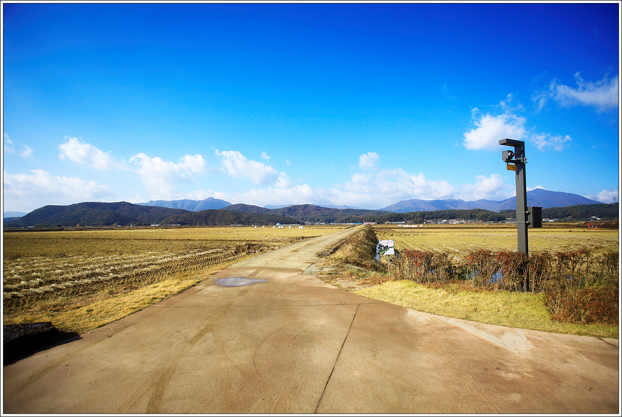 ▽ 다리를 건너 포천시 관인면 냉정리 들판의 벼 수확을 끝낸 풍경