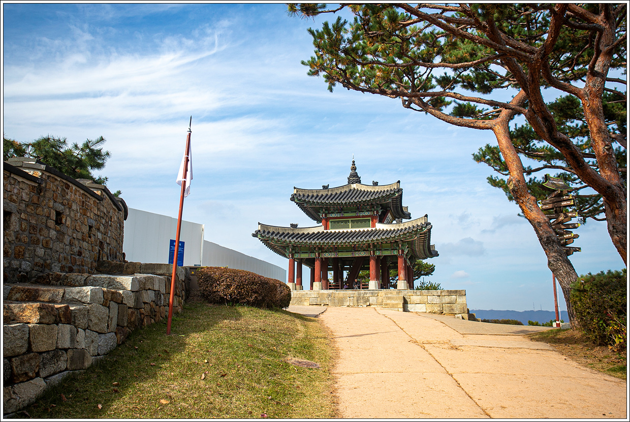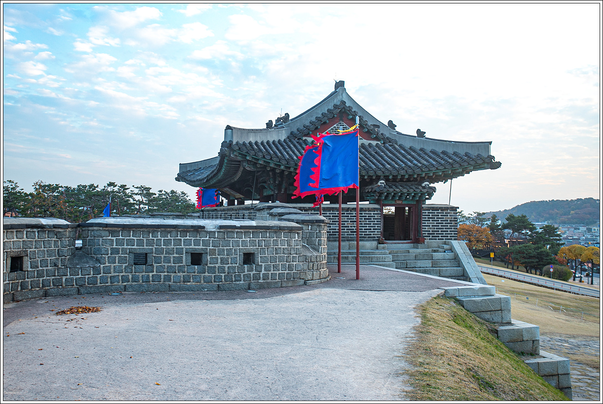 ▽ 이곳 동남각루에서 팔달산의 서장대를 렌즈로 당겨봤다. 제 시간에 이곳까지 탐방할 수 있을까 염려했는데 마칠 수 있어서 다행이다.