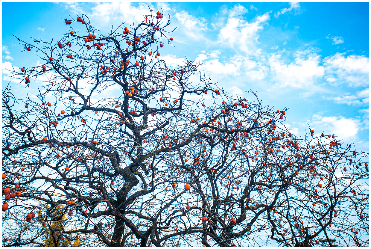 ▽ 성문 밖에 곧 농익어 떨어질 듯한 홍시가 주렁주렁...만추임을 알려준다.