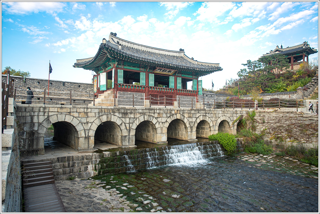 북수문은 화성의 북쪽 성벽이 수원천과 만나는 곳에 설치한 수문이다. 일곱 칸의 홍예문 위로 돌다리를 놓고 그 위에 누각을 지었는데, '화홍문'이라는 별칭으로 더 많이 알려져 있다.