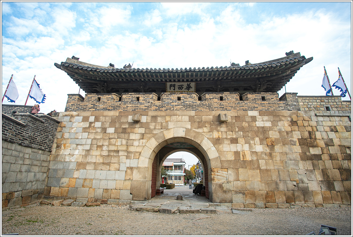 화서문은 수원 화성의 서문이다. '화성의 서쪽'이란 뜻이지만 서쪽에는 팔달산이 있어 서북쪽에 문을 두었다. 문밖으로 넓은 평지가 펼쳐져 있어 주변을 감시하기 위해 높다란 서북공심돈을 함께 세웠다.