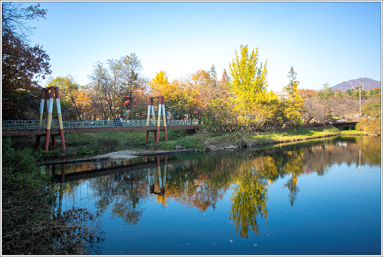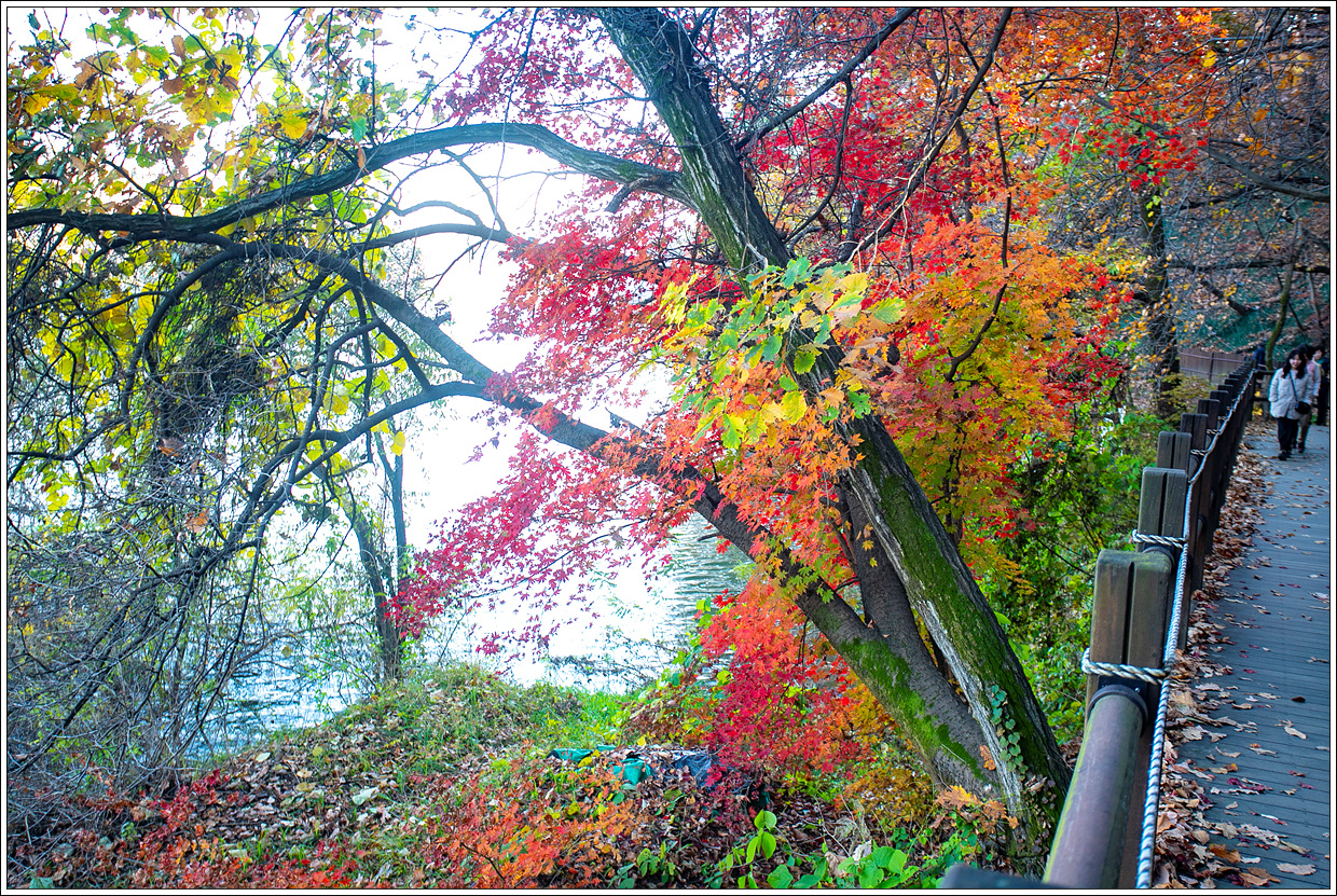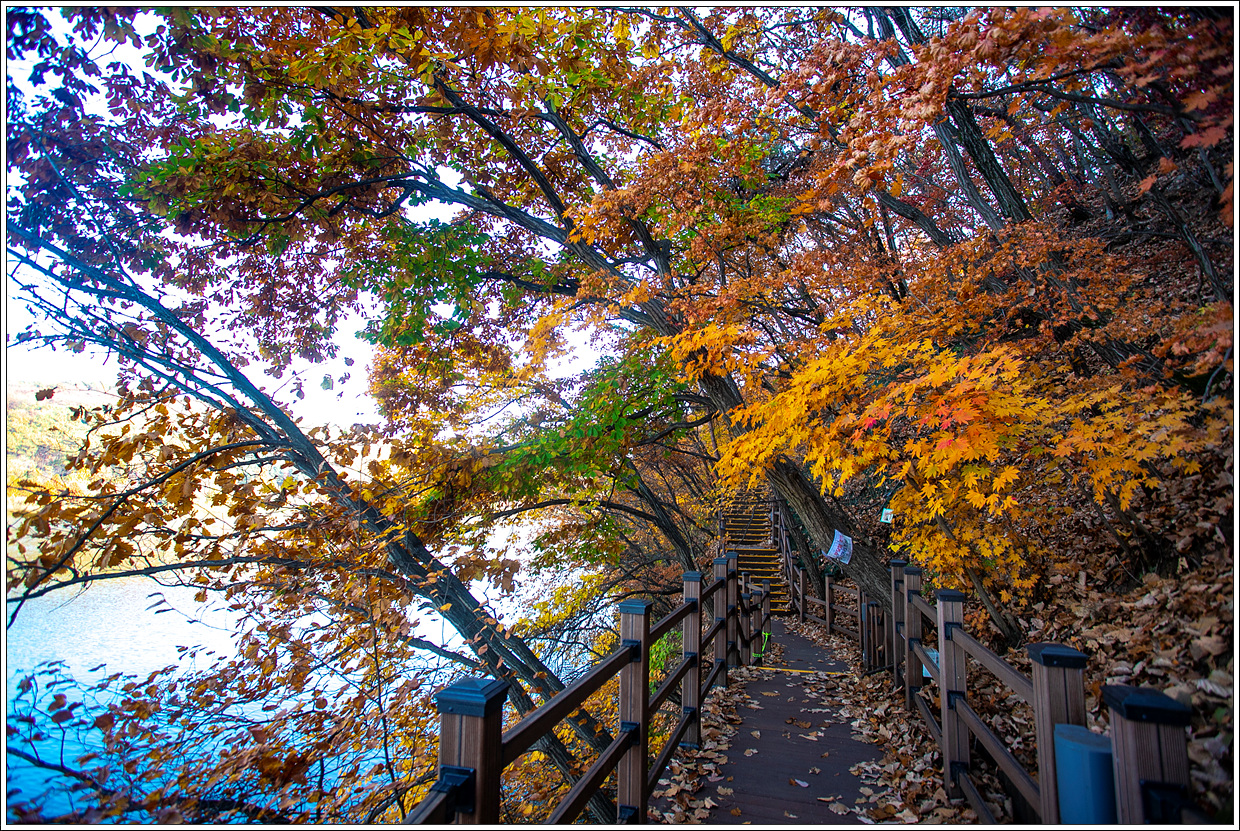 지난 여름의 폭염과 폭우등에 시달려 단풍은 제대로 들 수 있을까 했는데 10월 중순 이후로 태풍이나 비도 내리지 않고, 포근하고 청명한 가을 날씨가 이어지다 보니 예년과 달리 예상외로 단풍 색깔이 곱고 나뭇잎도 오래 버텨 주는 것 같다.
