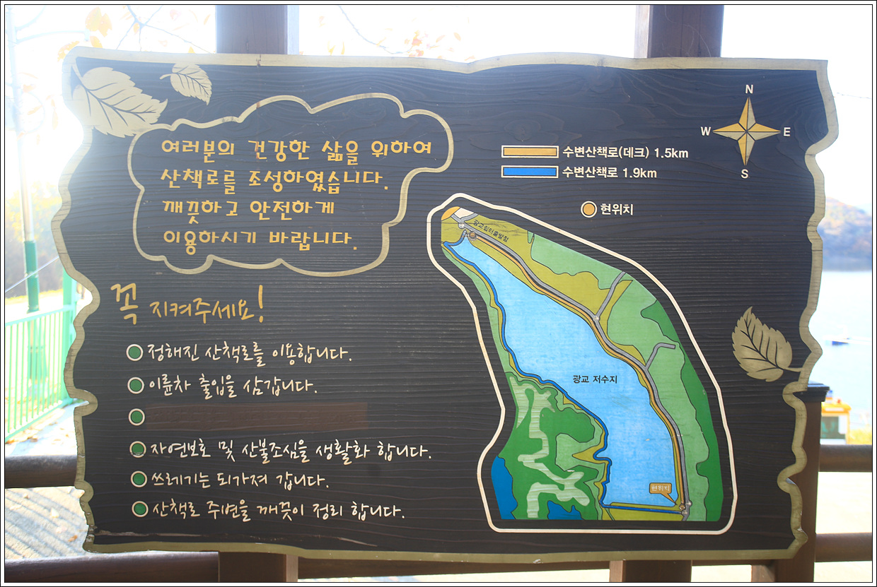 사정상 산행을 못하여 운동도 할겸 더 늦기 전에 단풍을 즐길 수 있는 곳을 찾던 중 산과 물이 어우러진 수원의 광교저수지를 찾아 한바퀴 돌아 보기로 한다.