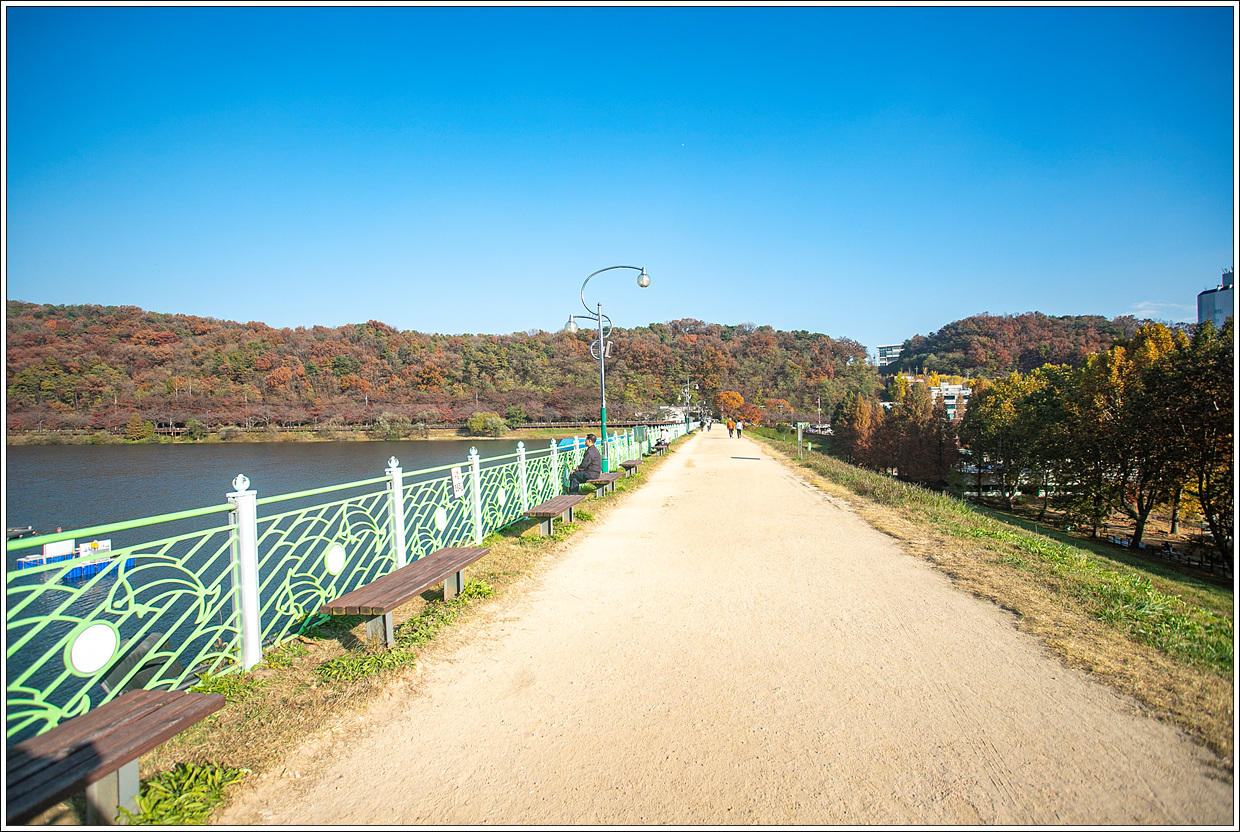 ▽ 제방 위로 놓여 있는 많은 벤치들...이곳에서 물멍하는 사람들이 오늘따라 행복해 보인다.