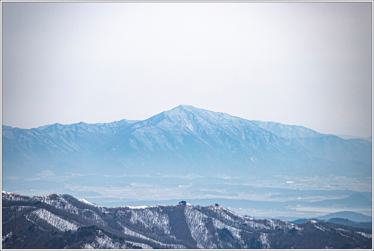 ▽ 각흘산 능선과 멀리 보개산 지장봉, 오른쪽 금학산을 원경으로 담아 본 풍경.