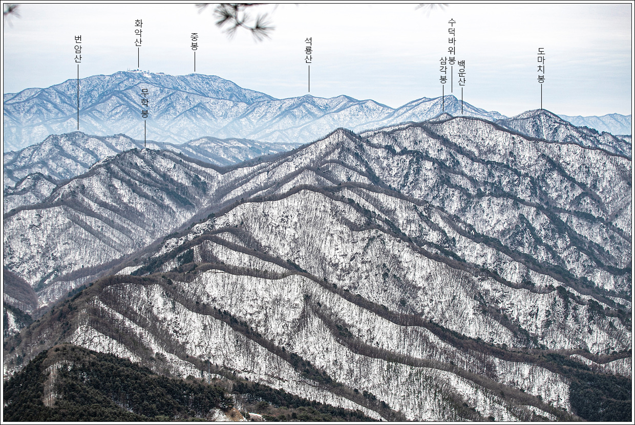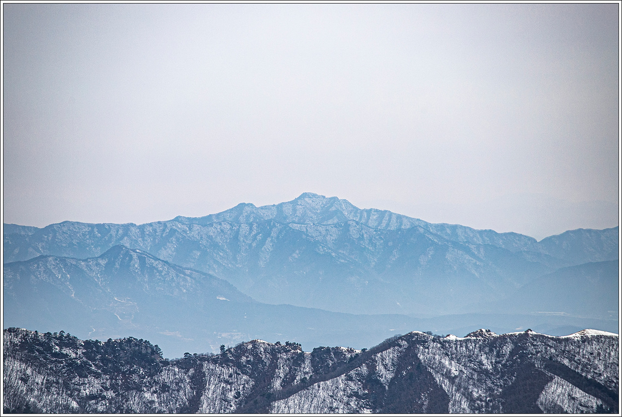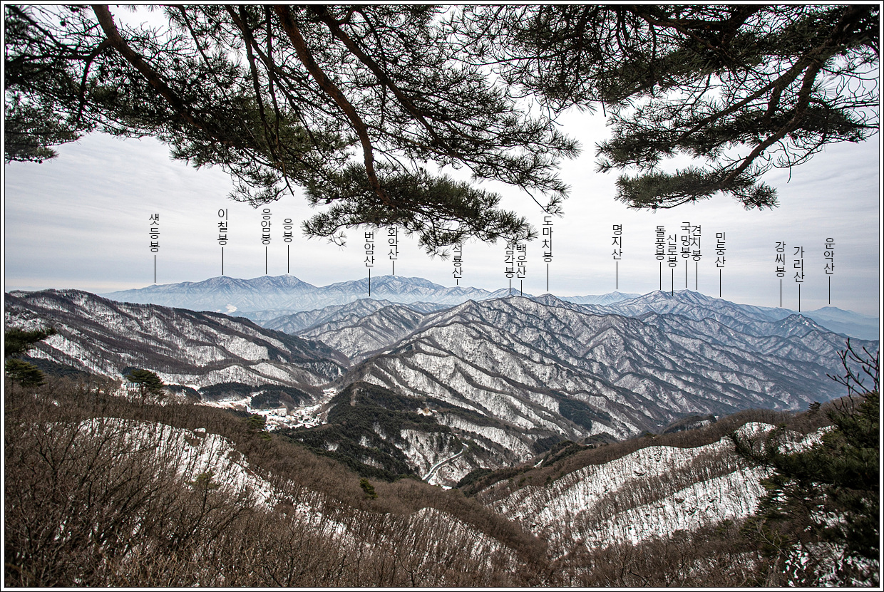 ▽ 첫 조망처에서 봤던 풍경을 이곳에서도 깔끔하게 보게 된다. 다시 한번 산과 봉우리들을 되짚어 보고 하산...