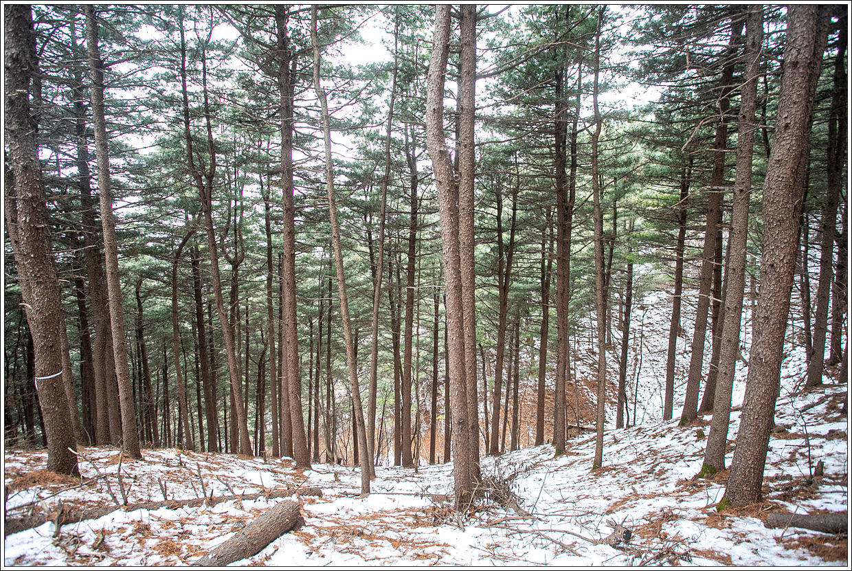 ▽ 잣나무라면 가평이 생각날만큼 많은데 이곳도 잣나무 숲으로 빽빽히 우거졌다.