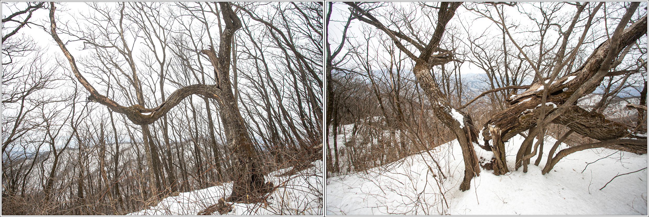▽ 강풍에 꺾이고, 찢어지고, 고산지대의 나무들이 겪는 수난이다.