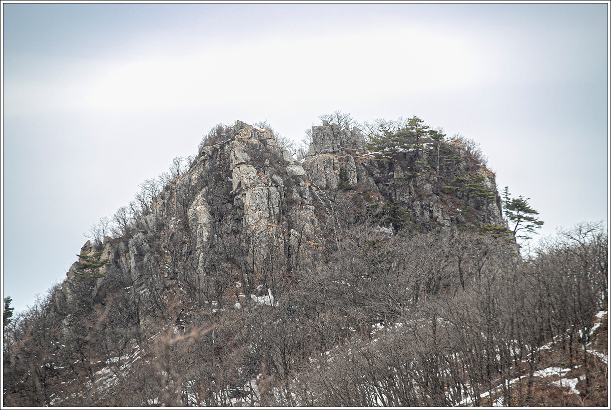 ▽ 좌우 잡목에 가려서 주변 조망도 시원치 않고 능선을 굽이굽이 올라가다 보니 이러한 바위가 눈길을 준다.